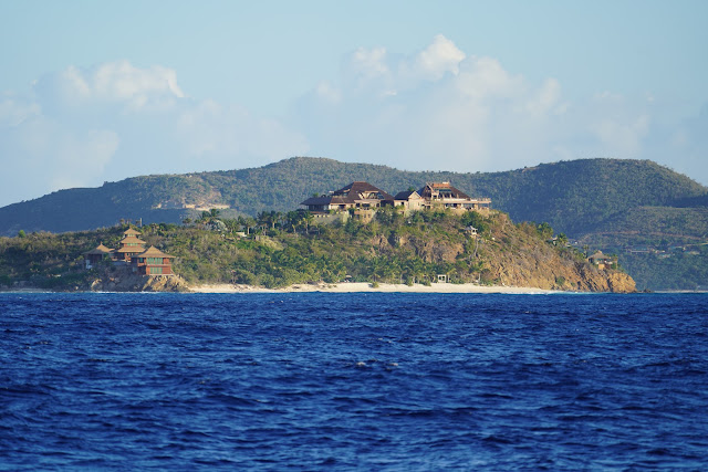 We were up and at ‘em by 4:15 but it was way too dark to rig the mainsail so we drank our coffee and enjoyed the sky. There was a nice, 10-knot breeze out of the northeast with partly cloudy skies. We were under way by 6:20, on a comfortable broad reach going about 7 - 8 knots. As the trip progressed, the wind backed a little and cycled between 4-5 knots and 8-10 knots; however, it was a beautiful day and we enjoyed being out on the ocean again after over 2 months in St. Maarten/St. Martin. There was a waxing gibbous moon high in the sky in the afternoon and we caught a nice Mahi-mahi as we neared Virgin Gorda.
